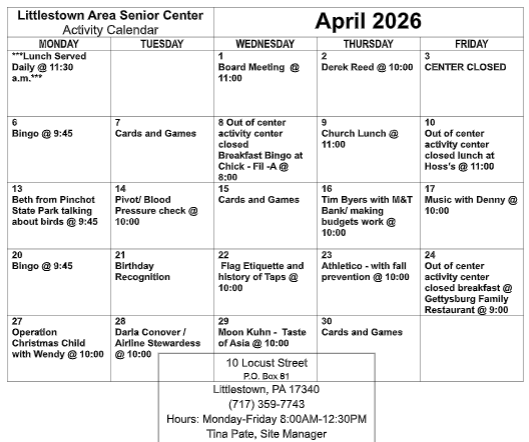 or signing-up at the center. Adams County Transit Authority will take participants to